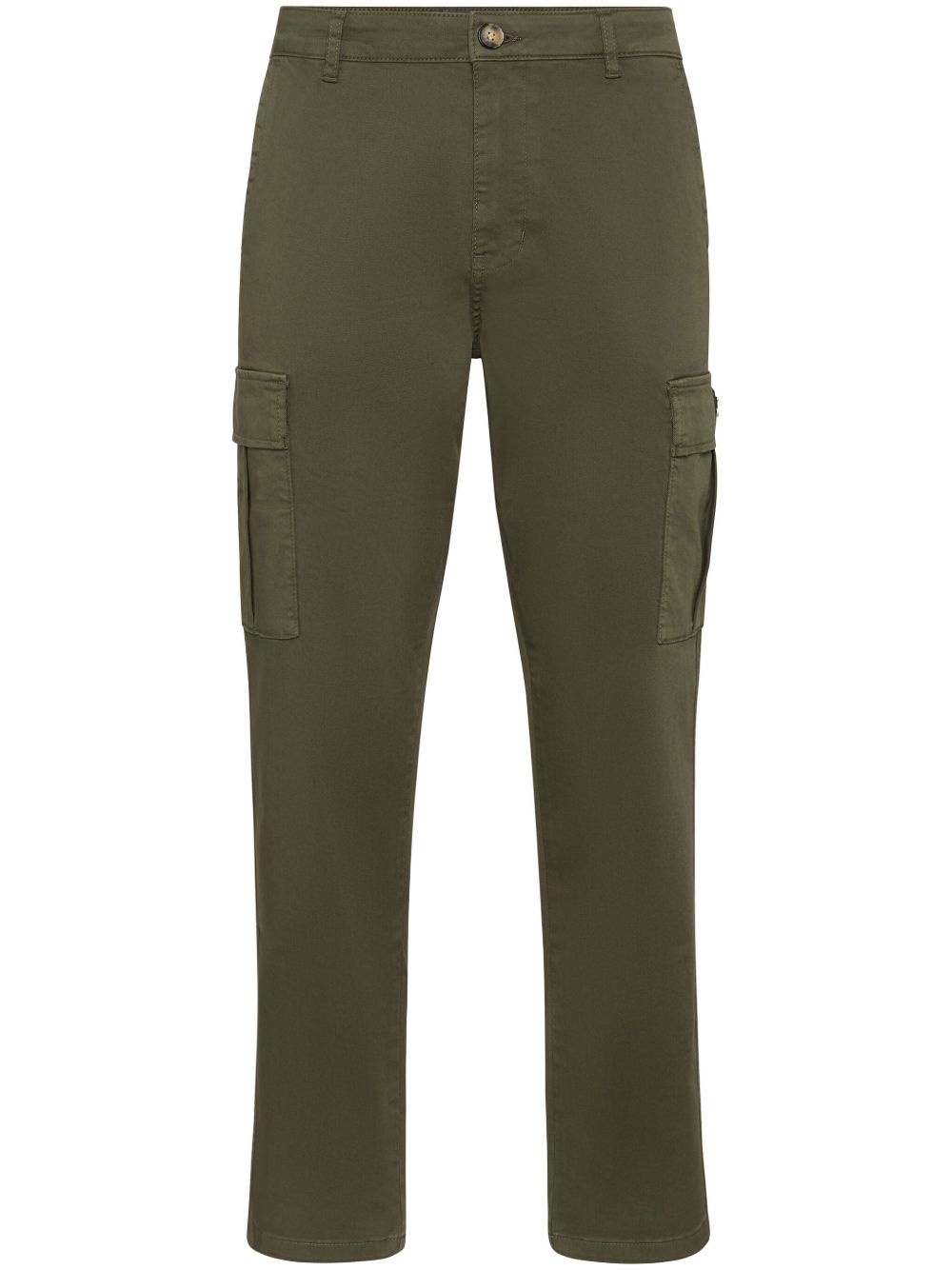 cargo trousers Highlights - Green - Front button fastening - Two side cargo pockets - Two side slit pockets - Logo patch to the side Imported Composition Cotton 98%, Elastane 2%