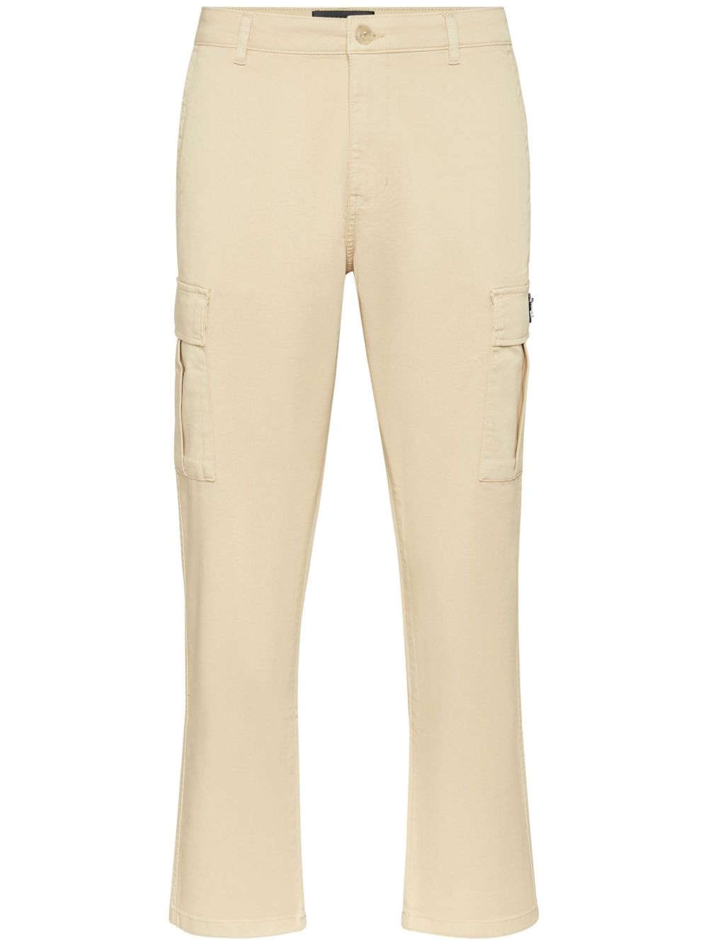 cargo trousers Highlights - Beige - Front button fastening - Two side cargo pockets - Two side slit pockets - Logo patch to the side Imported Composition Cotton 98%, Elastane 2%