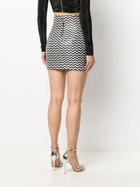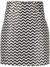 chevron mini skirt Highlights - White/black - Chevron print - High waist - Rear zip fastening - Logo plaque Made in Italy Composition Outer: Polyester 100% Lining: Viscose 51%, Acetate 49% SIZE & FIT Model measurements Height 5 ft 11 in(1.8 m) Bust/Chest 33.07 in(84 cm) Hips 37.4 in(95 cm) Waist 25.19 in(64 cm) FittingInformation This piece fits true to size. We recommend you get your regular size Cut for a slim fit Made with a mid-weight non-stretch fabric Washing instructions Dry Clean Only