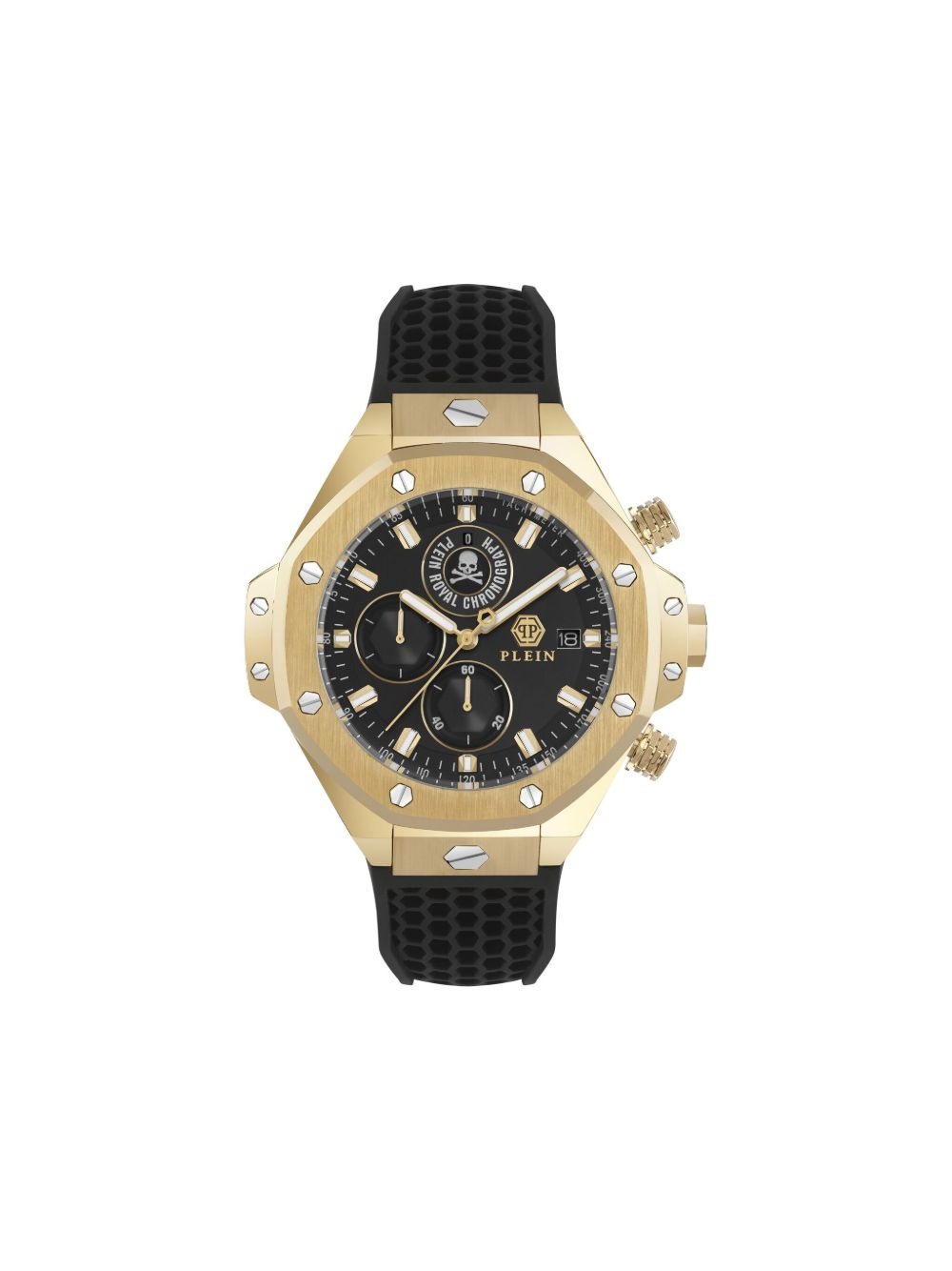 Chrono Royal 42mm Highlights - 42mm - Black - Stainless steel - Octagonal face - Central hours, minutes and seconds - Quartz movement - Chronograph counters - Calendar day-date - Two chronograph pushers - Screw-down crown - Rubber strap - Tang-buckle fastening Imported Composition Rubber 100%, stainless steel 100%