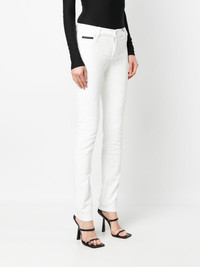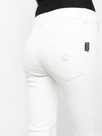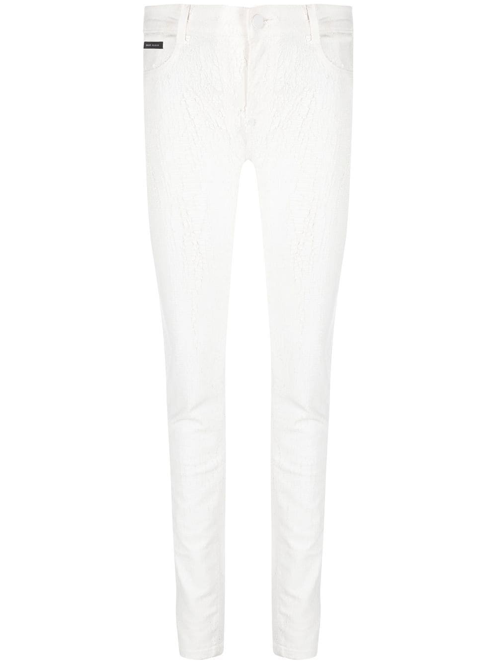 crackle-textured denim leggings white stretch-cotton cracked texture logo tag belt loops tonal logo plaque concealed fly and button fastening classic five pockets super-skinny cut Made in Italy Composition Calf Leather 100%, Cotton 97%, Spandex/Elastane 3% SIZE & FIT Model measurements Height 5 ft 10 in(1.78 m) Bust/Chest 31.49 in(80 cm) Hips 36.22 in(92 cm) Waist 25.59 in(65 cm) FittingInformation This piece fits small – you might want to get one size up Cut for a close fit Made with a mid-weight stretch fabric Washing instructions Machine Wash