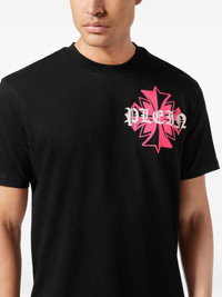 crest-print round neck T-shirt Highlights - Black - Round neck - Short sleeves - Crest print - Gothic lettering - Skull detail Imported Composition Cotton 100% Washing instructions Read Manufacturer Guidelines