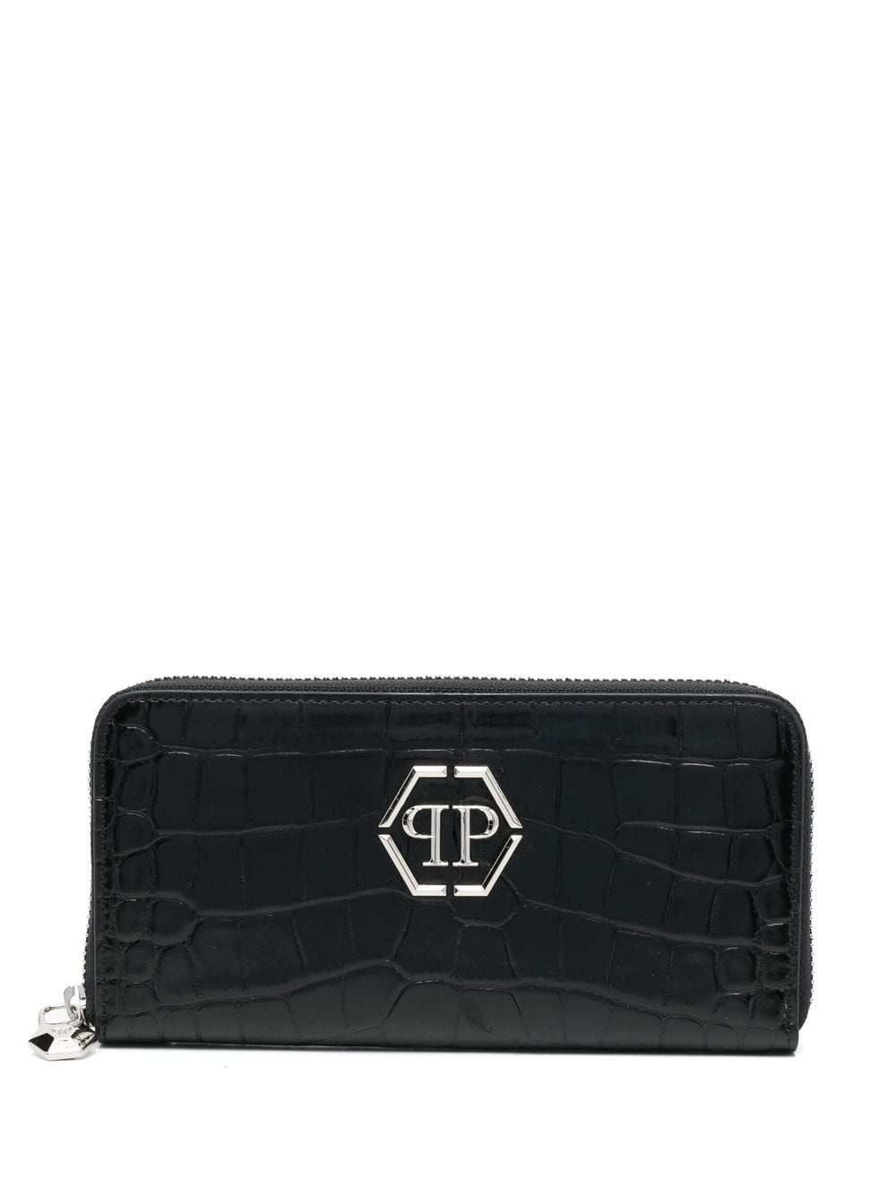 crocodile-embossed leather purse black calf leather embossed crocodile effect silver-tone logo plaque all-around zip fastening internal zip-fastening pocket internal card slots internal note compartments Made in Italy Composition Outer: Calf Leather 100% SIZE & FIT Measurement DEPTH 0.78 in(2 cm) LENGTH 3.93 in(10 cm) WIDTH 7.87 in(20 cm)