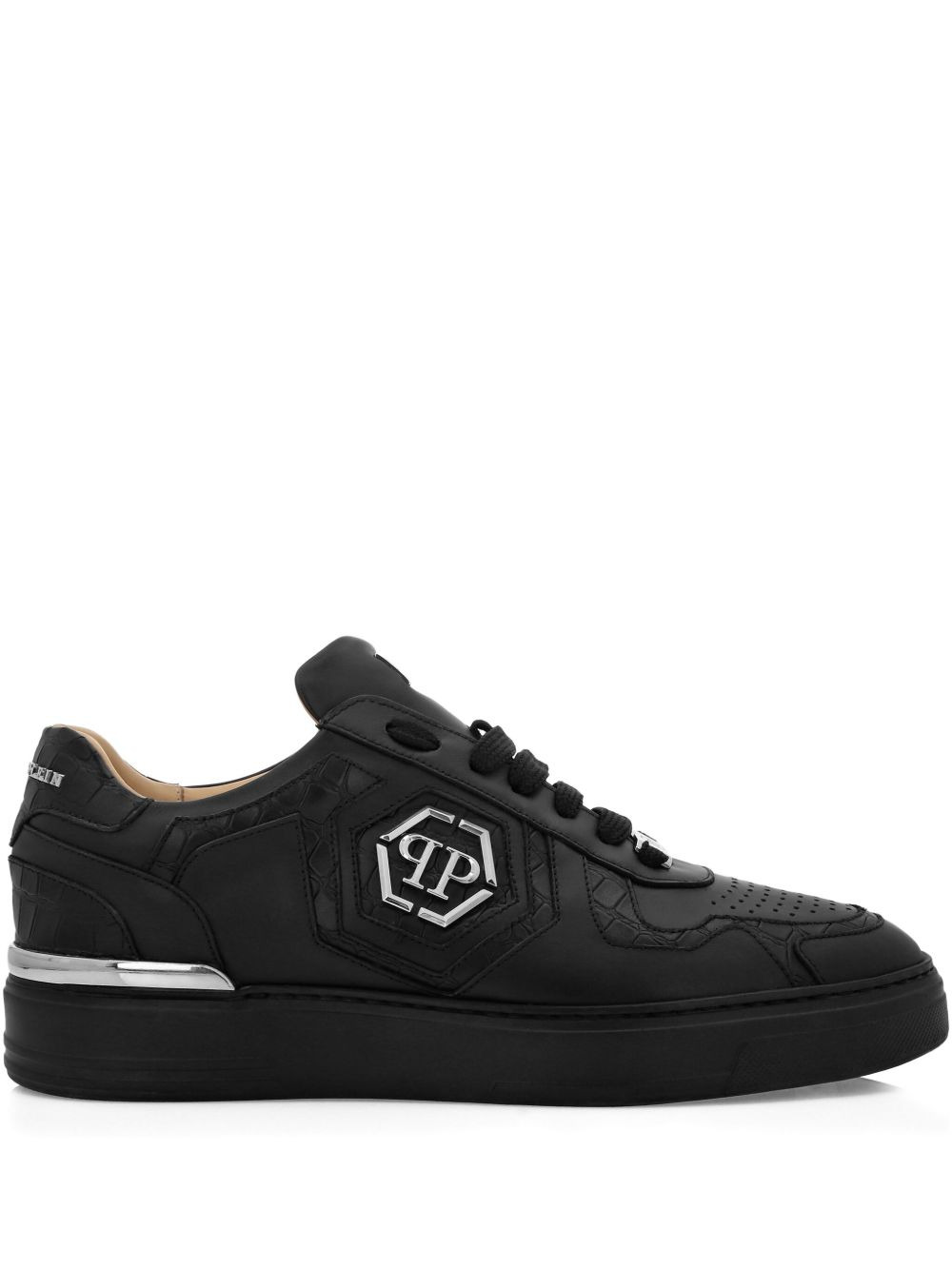 crocodile-embossed logo sneakers Highlights - Black - Crocodile embossing effect - Logo plaque - Lace-up fastening - Rubber sole Made in Italy Composition Lining: Fabric 100% Outer: Calf Leather 100% Sole: Rubber 100%