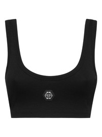 cropped tank top Highlights - Black - Stretch-design - Logo print to the front - U-neck - Wide shoulder straps Imported Composition Cotton 48%, Modal 48%, Elastane 4%