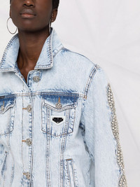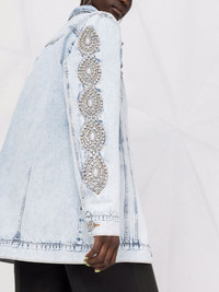 crystal-cable denim jacket light blue crystal embellishment logo patch at the chest classic collar front button fastening two chest patch pockets long sleeves long length Imported Composition Fabric 100% SIZE & FIT Model measurements Height 5 ft 10 in(1.77 m) Bust/Chest 32.28 in(82 cm) Hips 35.03 in(89 cm) Waist 25.19 in(64 cm) FittingInformation This piece fits true to size. We recommend you get your regular size Cut for a loose fit Made with a mid-weight non-stretch fabric Washing instructions Specialist Cleaning