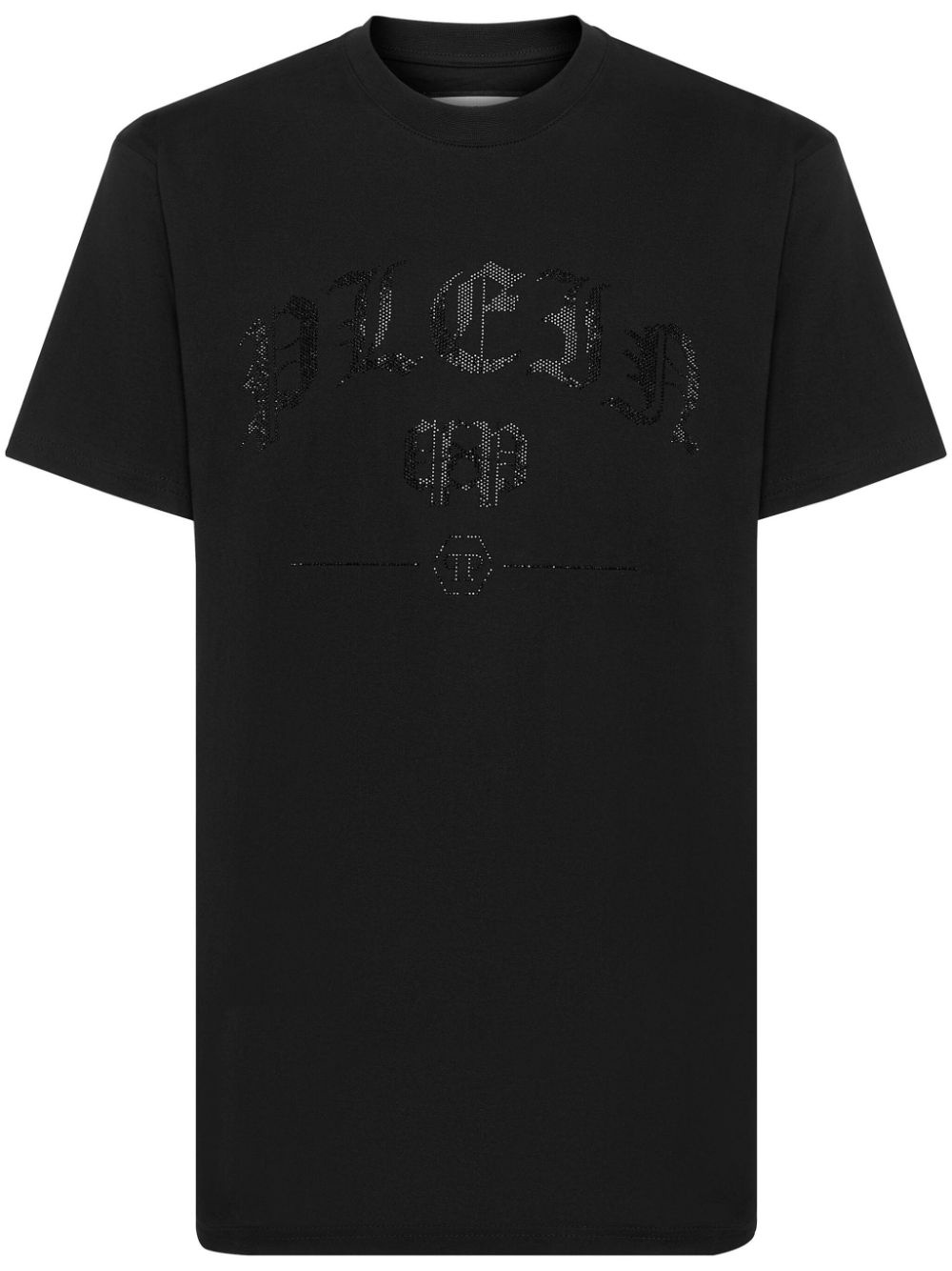 crystal-embellished cotton T-shirt Highlights - Jet black - Cotton - Jersey texture - Logo print to the front - Crystal embellishment - Applique logo - Mini logo tag - Crew neck - Short sleeves - Straight hem Imported Composition Cotton 100%, Glass Fiber 100%