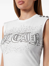 crystal-embellished cotton tank top Highlights - White - Cotton - Jersey texture - Crystal logo embellishment - Applique logo - Logo tag - Crew neck - Shoulder pads - Sleeveless - Straight hem Imported Composition Cotton 100%