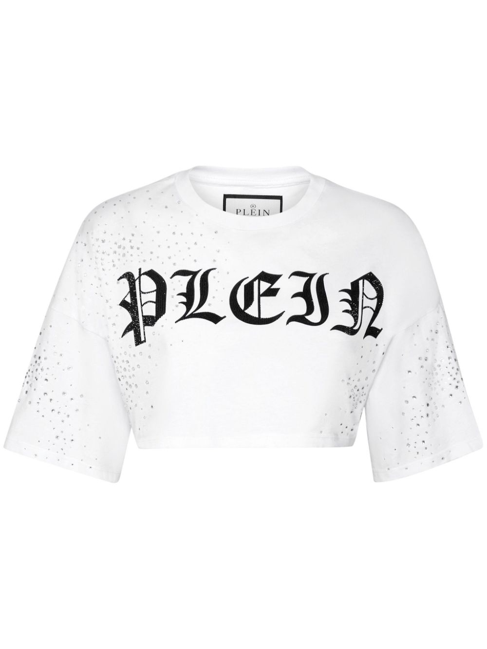 crystal-embellished cropped T-shirt Highlights - White - Cotton - Crystal embellishment - Crew neck - Short sleeves - Applique logo - Straight hem - Cropped Imported Composition Cotton 100% Washing instructions Read Manufacturer Guidelines