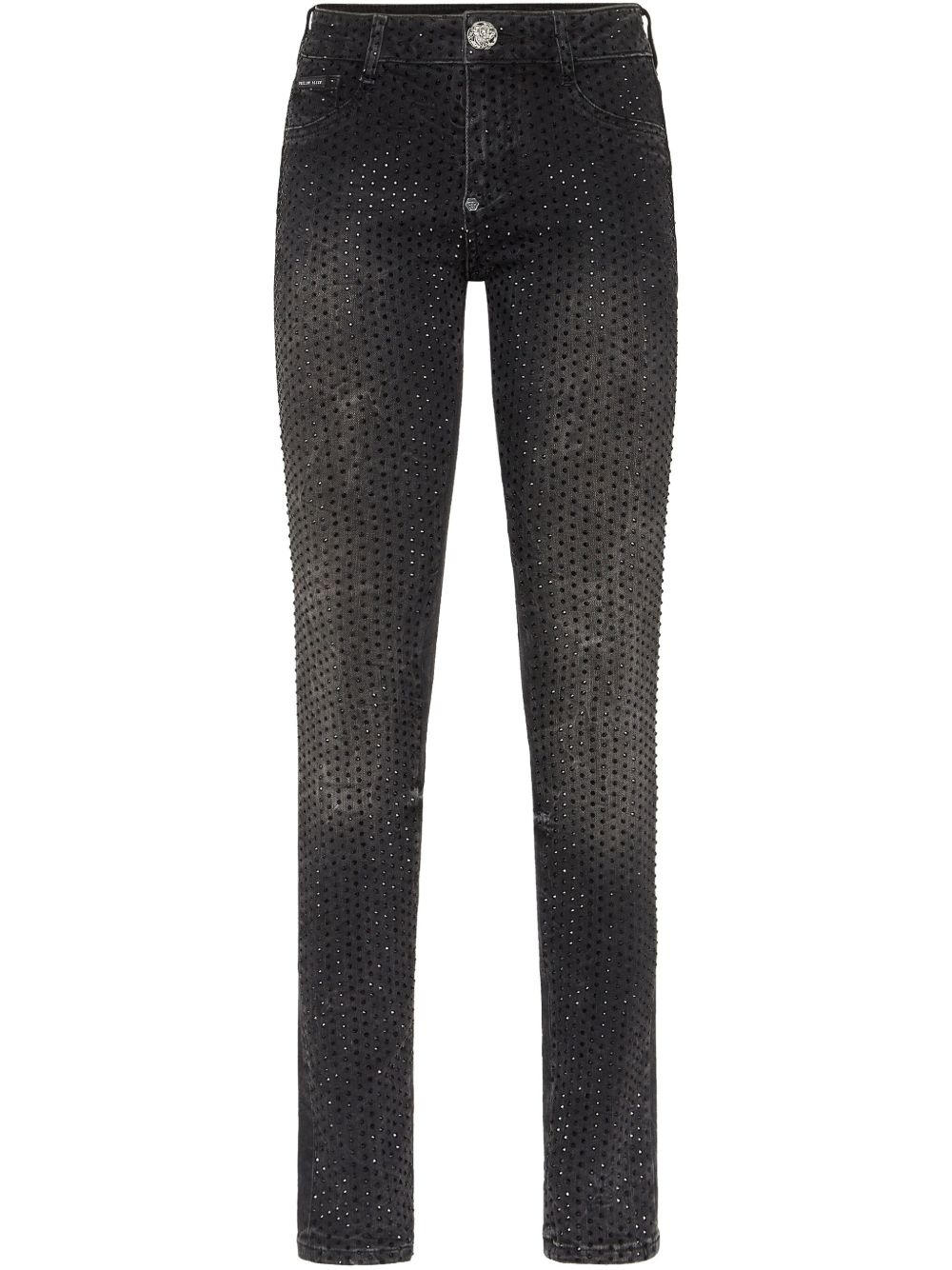 crystal-embellished jeans Highlights - Black - Concealed front fastening - Belt loops - Classic five pockets - Logo patch to the rear Imported Composition Outer: glass 100%, Cotton 92%, Elastomultiester 6%, Elastane 2%