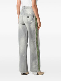 crystal-embellished jeans Highlights - Light grey - Concealed front fastening - Belt loops - Classic five pockets - Paint splatter detail Imported Composition Outer: Cotton 100%, glass 100%, Metal 100% Lining: Polyester 65%, Cotton 35%