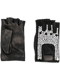 crystal-embellished leather gloves black calf leather crystal embellishment silver-tone logo plaque fingerless design silk lining Made in Italy Composition Calf Leather 100%, Silk 100%
