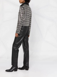 crystal-embellished leather jacket silver-tone/jet-black lambskin-blend crystal embellishment front zip fastening long sleeves side zip-fastening pocket front flap pocket Imported Composition Outer: Lamb Skin 100%, Crystal 100% Lining: Polyester 97%, Spandex/Elastane 3% SIZE & FIT Model measurements Height 5 ft 11 in(1.8 m) Bust/Chest 31.49 in(80 cm) Hips 35.82 in(91 cm) Waist 24.8 in(63 cm) FittingInformation This piece fits true to size. We recommend you get your regular size Cut for a slim fit Made with a heavyweight fabric Washing instructions Specialist Cleaning