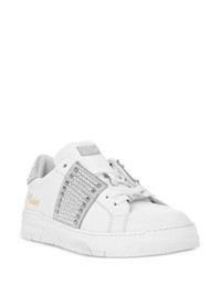 crystal-embellished leather sneakers Highlights - White - Lace-up front fastening - Crystal-embellished - Padded collar - Round toe - Branded insole - Rubber sole Made in Italy Composition Outer: Zamak 100%, Calf Leather 100% Sole: Rubber 100% Lining: Calf Leather 100%