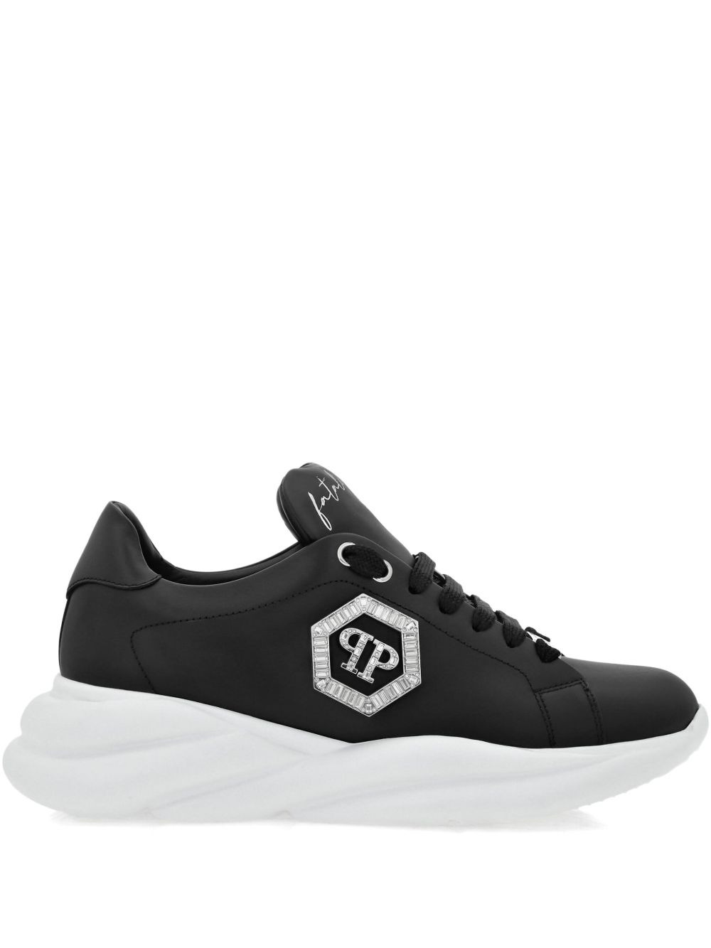 crystal-embellished leather sneakers Highlights Made in Italy Composition Lining: Sheepskin 100%, Calf Leather 100% Outer: Zinc 100%, Calf Leather 100% Sole: Synthetic Rubber 100%
