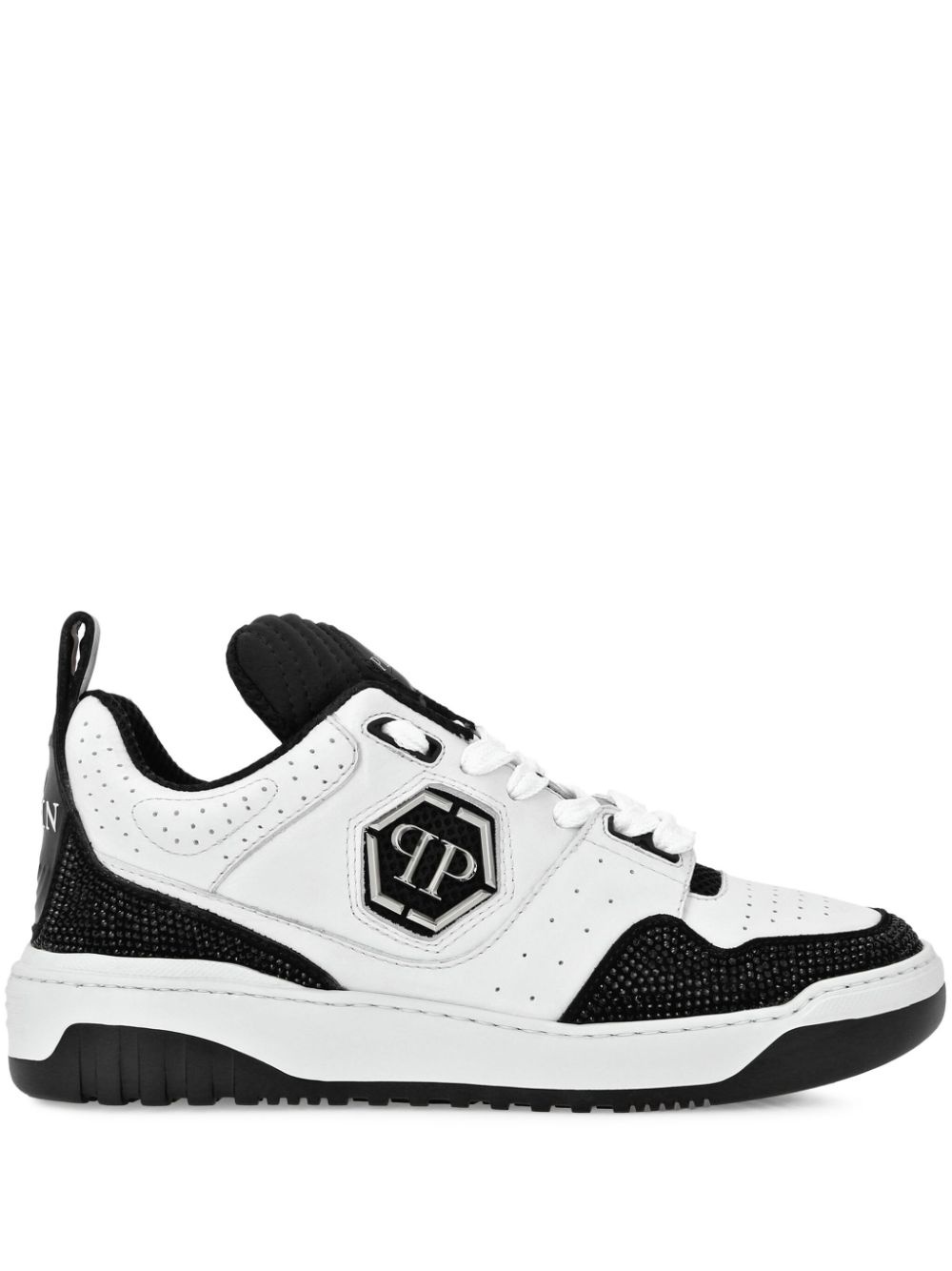 crystal-embellished leather sneakers