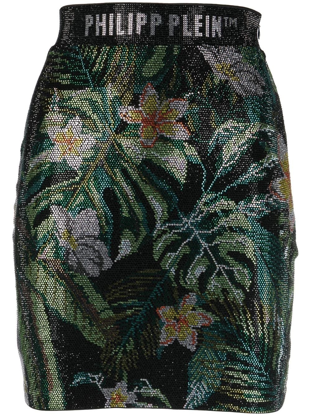 crystal-embellished mini skirt black/multicolour cotton blend crystal embellishment logo waistband pencil design Imported Composition Cotton 95%, Spandex/Elastane 5% SIZE & FIT Model measurements Height 5 ft 10 in(1.78 m) Bust/Chest 31.49 in(80 cm) Hips 37 in(94 cm) Waist 23.62 in(60 cm) FittingInformation This piece fits true to size. We recommend you get your regular size Cut for a slim fit Made with a heavyweight stretch fabric Washing instructions Hand Wash