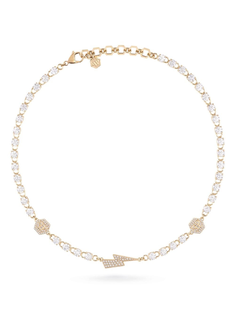 crystal-embellished necklace Highlights - Gold-tone - Lobster claw fastening - Adjustable fit - Logo pendant - Statement pendant Imported SIZE & FIT Measurement Length when open 15.74 in(40 cm)