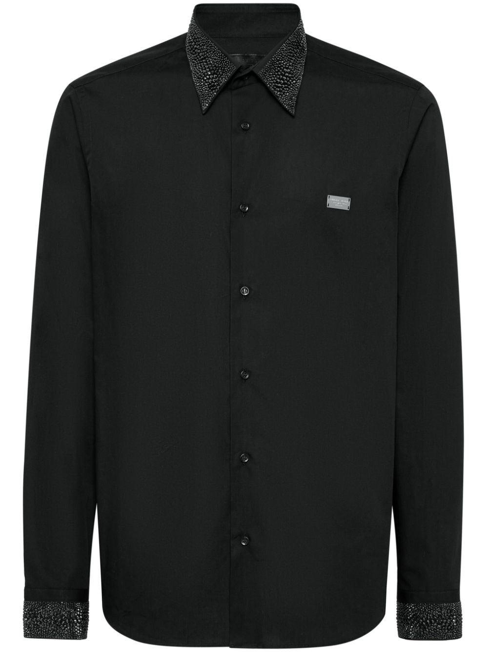 crystal-embellished shirt Highlights - Black - Front button fastening - Buttoned-cuff sleeves - Curved hem - Logo plaque Made in Italy Composition Cotton 100%