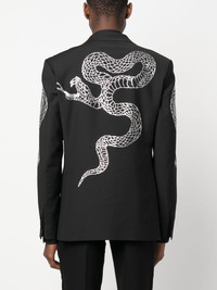 crystal-embellished single-breasted blazer black crystal embellishment classic lapels front button fastening two side flap pockets long sleeves Made in Italy Composition Lining: Viscose 51%, Acetate 49% Outer: Polyester 53%, Wool 43%, Elastane 4% SIZE & FIT Model measurements Height 6 ft 2 in(1.88 m) Bust/Chest 36.61 in(93 cm) Hips 35.82 in(91 cm) Waist 27.95 in(71 cm) Washing instructions Dry Clean Only
