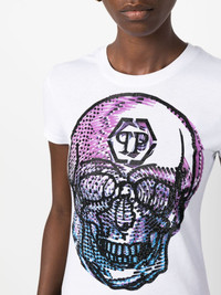 crystal-embellished skull-print T-shirt Highlights - White - Cotton - Crystal embellishment - Skull print to the front - Logo print to the front - Logo patch to the rear - Round neck - Short sleeves - Straight hem Imported Composition Cotton 100% SIZE & FIT Model measurements Height 5 ft 10 in(1.78 m) Bust/Chest 31.49 in(80 cm) Hips 37 in(94 cm) Waist 23.62 in(60 cm) FittingInformation Designed for a close fit throughout Made from a midweight non-stretch fabric, this piece offers minimal elasticity when worn This piece fits true to size – take your usual size Washing instructions Hand Wash