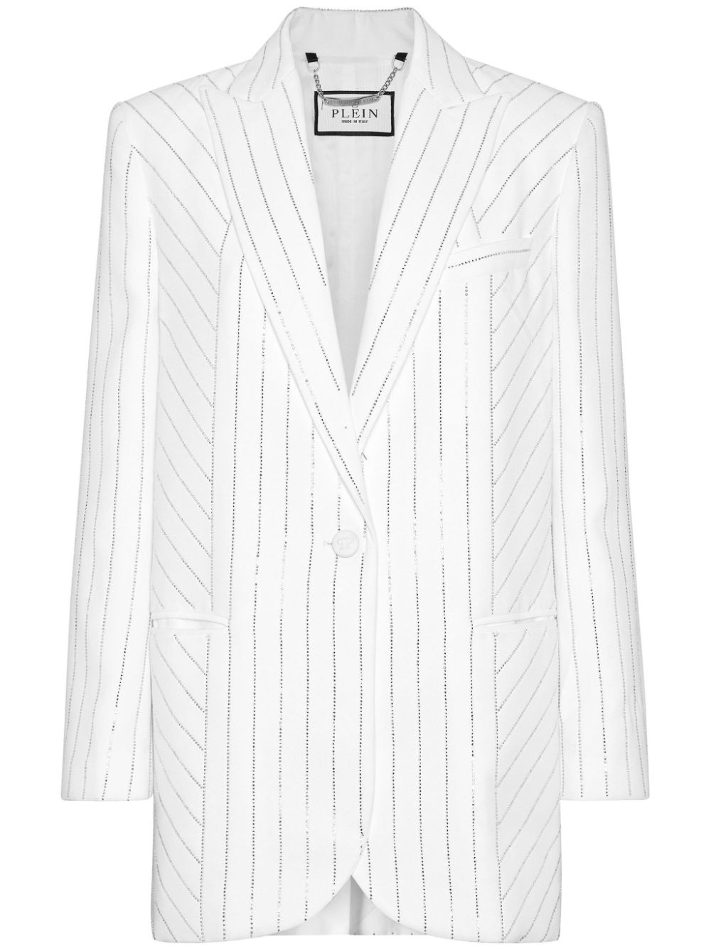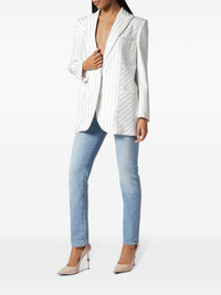 crystal-pinstripe cady blazer Highlights - White - Cady texture - Crystal embellishment - Pinstripe pattern - Notched lapels - Front button fastening - Long sleeves - Buttoned cuffs - Chest welt pocket - Two side welt pockets - Front curved hem - American rear vent Made in Italy Composition Outer: Viscose 51%, Acetate 46%, Elastane 3% Lining: Viscose 100%
