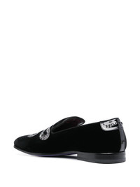 crystal snake loafers black calf leather patent finish crystal embellishment almond toe branded heel counter leather sole Made in Italy Composition Outer: Calf Leather 100%, Viscose 65%, Cupro 35% Lining: Sheepskin 100%, Polyamide 100% Sole: Bovine Leather 100% SIZE & FIT Measurement HEEL 0.78 in(2 cm)