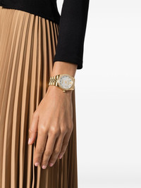 Date Superlative 38mm Philipp Plein's Date Superlative 38mm expresses the brand's maximalist, ornate aesthetic. Its sleek stainless steel design with a link bracelet and round face is boosted by crystal embellishments on the bezel and colourful Arabic dial, adding sparkling decadence. It is powered by a quartz movement and indicates time and day thanks to a magnified date window, lending functionality. Highlights - Stainless steel - Quartz movement - Arabic dial - Crystal embellishment - Silver-tone - Baton hands - Magnified date window - Round face - Crystal-encrusted bezel - Screw-down crown - Stainless steel link bracelet - Butterfly clasp fastening - Water resistance up to 50m/5 atm - This item comes with a standard two-year warranty from the brand. Imported SIZE & FIT Model measurements Height 5 ft 10 in(1.78 m) Bust/Chest 33.07 in(84 cm) Hips 36.61 in(93 cm) Waist 24.8 in(63 cm) Measurement CIRCUMFERENCE 8.26 in(21 cm) DIAMETER 1.61 in(4.1 cm) Thickness 0.39 in(1 cm) WIDTH 1.02 in(2.6 cm)