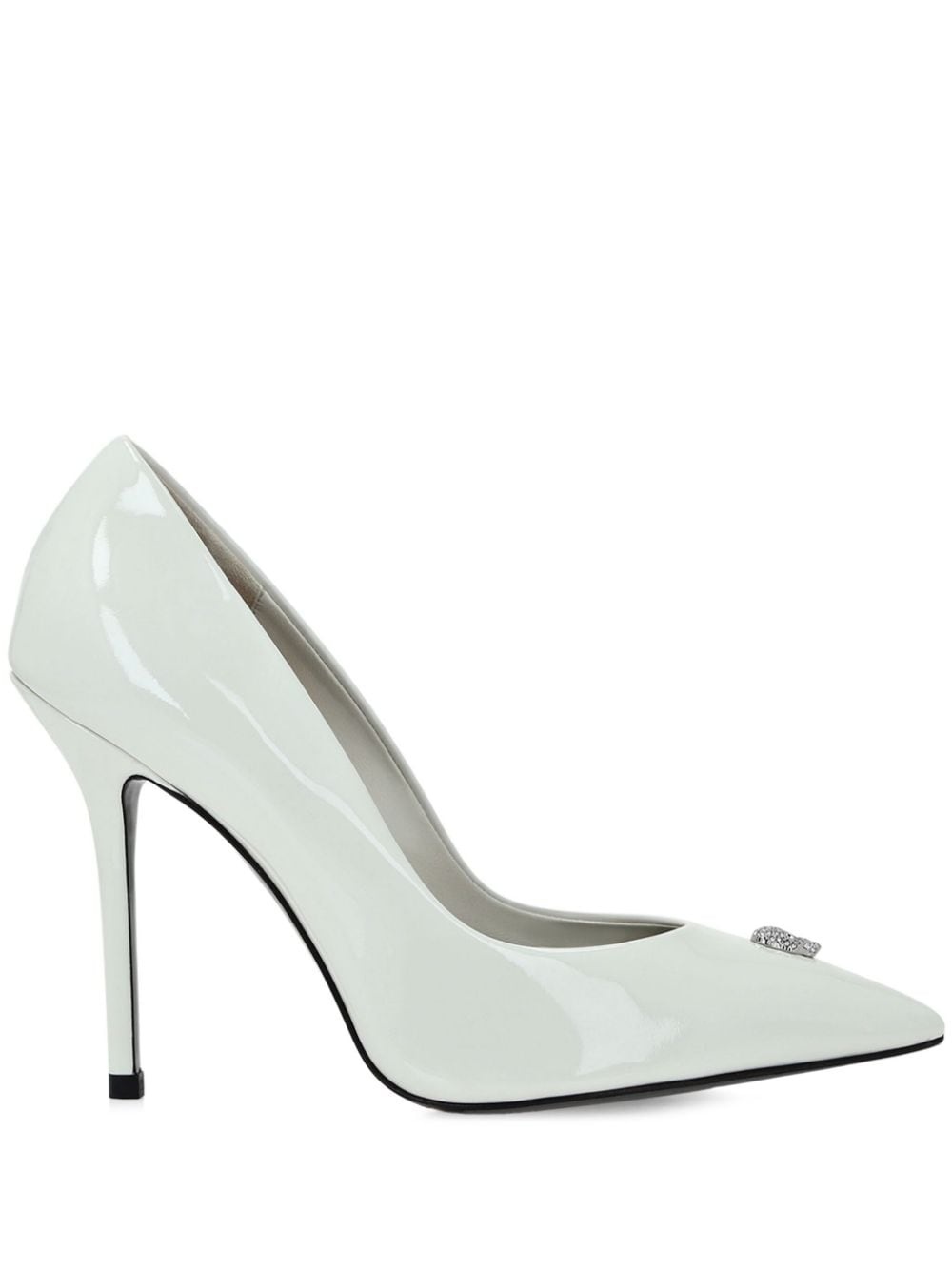 Decollete pumps Highlights - White - Calf leather - Patent finish - Skull stud detailing - Pointed toe - High stiletto heel - Branded insole - Leather outsole Made in Italy Composition Sole: Calf Leather 100% Lining: Calf Leather 100% Outer: Calf Leather 100%