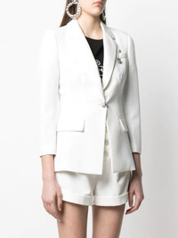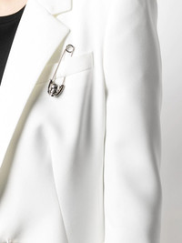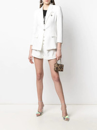 decorative-pin blazer white notched lapels front button fastening three-quarter length sleeves chest welt pocket two front flap pockets straight hem leopard print lining Made in Italy Composition Outer: Polyester 89%, Spandex/Elastane 11% Lining: Polyester 100% SIZE & FIT Model measurements Height 5 ft 10 in(1.79 m) Bust/Chest 32.67 in(83 cm) Hips 35.03 in(89 cm) Waist 24.8 in(63 cm) FittingInformation This piece fits true to size. We recommend you get your regular size Cut for a slim fit Made with a mid-weight fabric Washing instructions Dry Clean Only