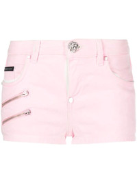 Denim Hot Pants Biker shorts light pink cotton/cotton blend decorative zip detailing logo patch to the rear front button and zip fastening belt loops classic five pockets Made in Italy Composition Lining: Cotton 100% Outer: Cotton 97%, Spandex/Elastane 3% Washing instructions Dry Clean Only