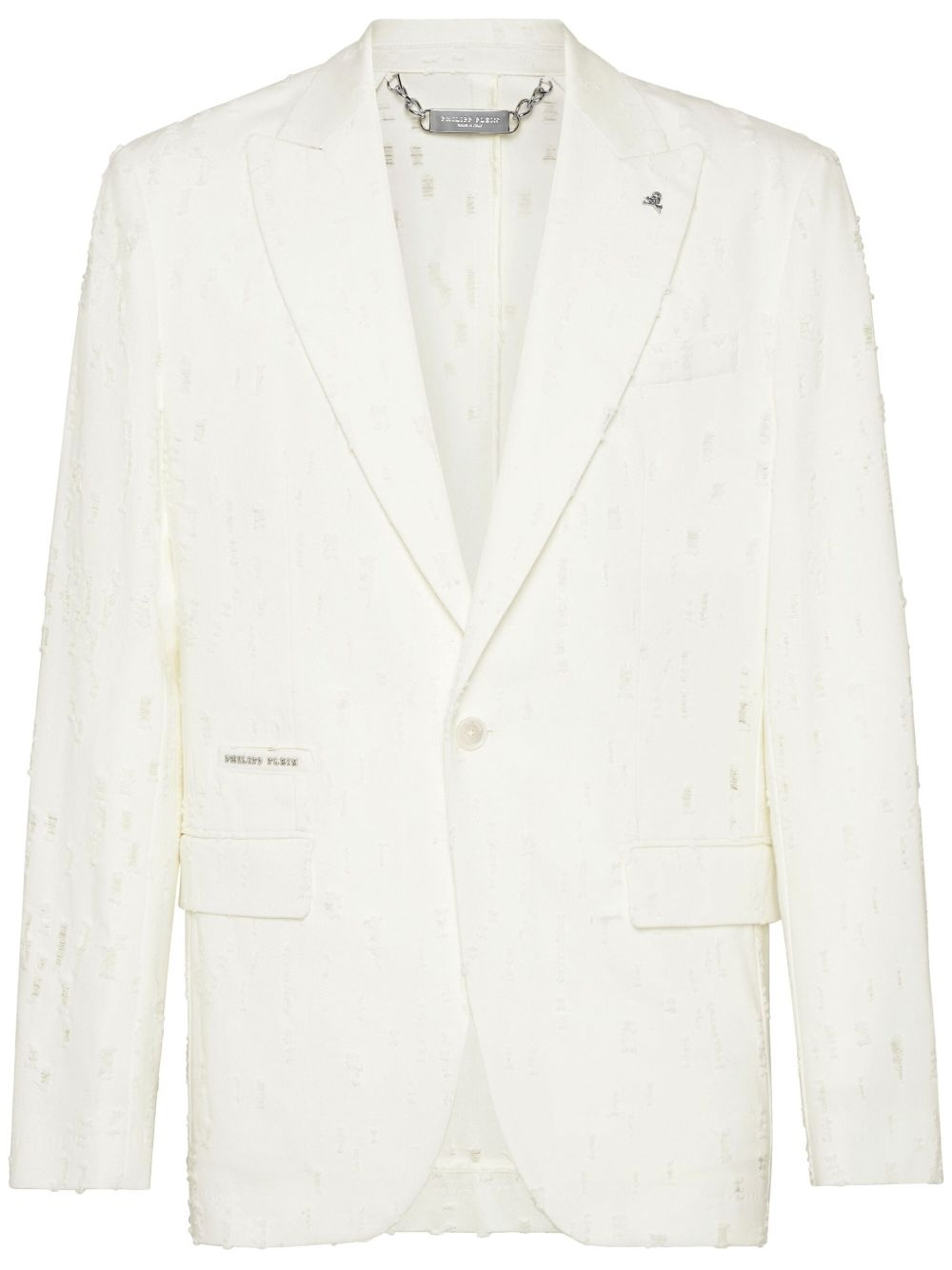 distressed blazer Highlights - White - Front button fastening - Two front flap pockets - Buttoned cuffs - Central rear vent Made In Italy Composition Lining: Viscose 51%, Acetate 49% Outer: Cotton 100%
