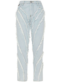 distressed rhinestone-embellished jeans Highlights - Light blue - Stretch-cotton - Denim - Distressed finish - Rhinestone embellishment - Applique logo - Mid-rise - Belt loops - Concealed fly and button fastening - Classic five pockets - Straight leg Imported Composition Outer: Cotton 99%, Elastane 1% Lining: Polyester 65%, Cotton 35%