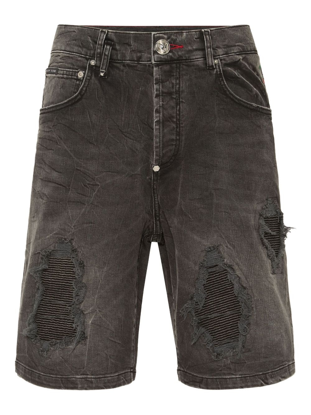 distressed shorts Highlights - Black - Front button fastening - Belt loops - Classic five pockets - Logo patch to the rear Imported Composition Cotton 98%, Elastane 2%