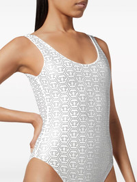 embellished monogram swimsuit Highlights - White - Stretch-design - Monogram pattern - Rhinestone embellishment - Round neck - Wide shoulder straps - Open back - Be mindful to try on swimwear over your own garments. Imported Composition Glass Fiber 100%, Polyamide 80%, Elastane 20%