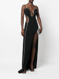 embellished sleeveless maxi dress jet black crystal embellishment cut-out detailing sweetheart neck sleeveless maxi Made In Italy Composition Viscose 51%, Acetate 46%, Spandex/Elastane 3% SIZE & FIT Model measurements Height 6 ft 2 in(1.89 m) Bust/Chest 37.4 in(95 cm) Hips 36.61 in(93 cm) Waist 29.13 in(74 cm) Washing instructions Dry Clean Only