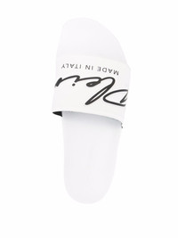 embossed logo slides white embossed logo to the front open toe branded insole slip-on style flat rubber sole Made in Italy Composition Outer: Rubber 100% Lining: Rubber 100% Sole: Rubber 100% SIZE & FIT Measurement HEEL 0.78 in(2 cm) Sole height 0.39 in(1 cm)