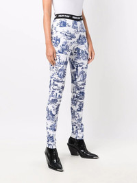 embroidered high-rise leggings blue/white embroidered design embroidered logo high waist elasticated waistband Imported Composition Cotton 92%, Polyester 6%, Spandex/Elastane 2% SIZE & FIT Model measurements Height 5 ft 9 in(1.74 m) Bust/Chest 32.28 in(82 cm) Hips 35.82 in(91 cm) Waist 24.01 in(61 cm) FittingInformation This piece fits true to size. We recommend you get your regular size Cut for a slim fit Made with a mid-weight stretch fabric Washing instructions Dry Clean Only