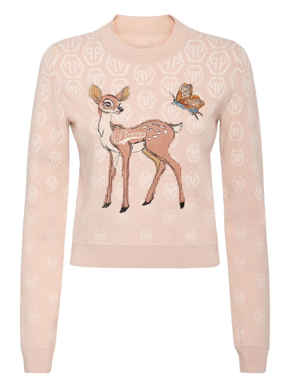 Fairy motif sweater Highlights - Pale pink - Deer and butterfly motifs - Logo pattern - Ribbed cuffs - Round neckline - Embroidered logo at the back Made in Italy Composition Fabric 100% Washing instructions Read Manufacturer Guidelines