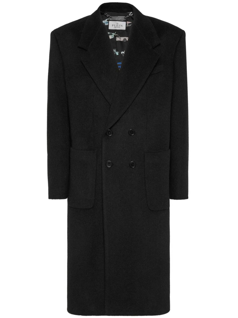 felted coat Highlights - Black - Double-breasted button fastening - Buttoned cuffs - Two side patch pockets - Central rear vent Made in Italy Composition Outer: Virgin Wool 70%, Cashmere 10%, Polyamide 2% Lining: Polyester 100%