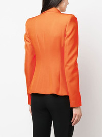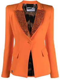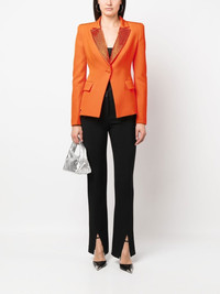 fitted single-breasted blazer pumpkin orange slim cut crystal embellishment classic lapels front button fastening long sleeves two front flap pockets Made in Italy Composition Outer: Polyester 97%, Spandex/Elastane 3% Lining: Polyester 97%, Spandex/Elastane 3% SIZE & FIT Model measurements Height 5 ft 11 in(1.8 m) Bust/Chest 33.07 in(84 cm) Hips 37.4 in(95 cm) Waist 25.19 in(64 cm) FittingInformation This piece fits true to size. We recommend you get your regular size Cut for a slim fit Made with a mid-weight stretch fabric Washing instructions Dry Clean Only