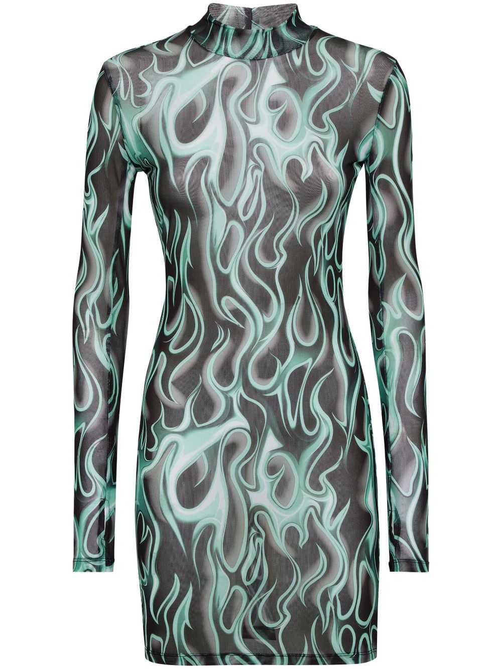 Flame minidress Highlights - Black - Pull-on style - Semi-sheer construction - Mock neck - Long sleeves Imported Composition Polyester 85%, Elastane 15%