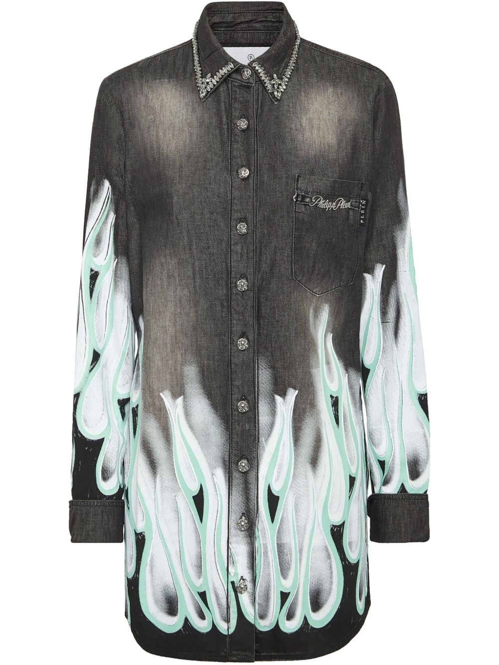 Flame Racing denim shirt Highlights - Dark grey - Front button fastening - Chest patch pocket - Buttoned cuffs - Logo lettering Imported Composition Cotton 100%, glass 100%, Polyester 100%, Metal 100%