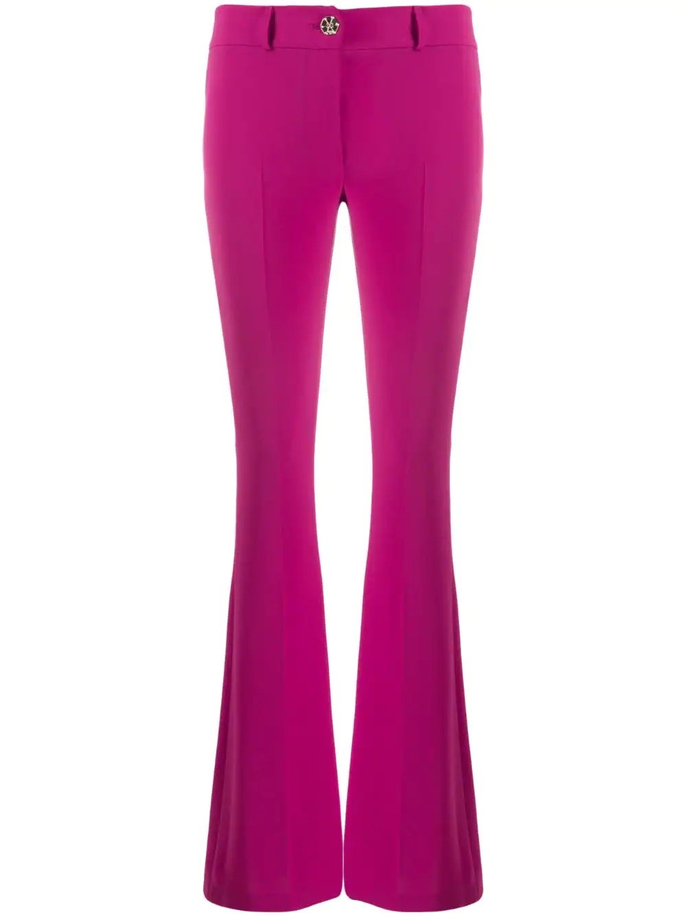 flared trousers Walk into the office in style and grace with these pink flared trousers from Philipp Plein. Constructed with a fitted mid-waist, they'll create an elegant look anytime. Now, go. Show them who's the boss! Featuring a mid-rise, belt loops, a front button fastening, back pockets and a flared style. Made in Italy Composition Outer: Polyester 100% Lining: Acetate 60%, Viscose 40% SIZE & FIT Model measurements Height 5 ft 11 in(1.8 m) Bust/Chest 31.49 in(80 cm) Hips 35.82 in(91 cm) Waist 24.8 in(63 cm) FittingInformation This piece fits true to size. We recommend you get your regular size Designed to be fitted at the waist and through the thigh, loose from the knee Made with a mid-weight non-stretch fabric Washing instructions Dry Clean Only