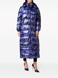floral-print feather-down jacket Highlights - Black/electric purple - Feather down - All-over floral print - Logo patch at the chest - Classic collar - Front button fastening - Long sleeves - Elasticated cuffs - Mid-length - Straight hem Imported Composition Polyester 100% Washing instructions Read Manufacturer Guidelines