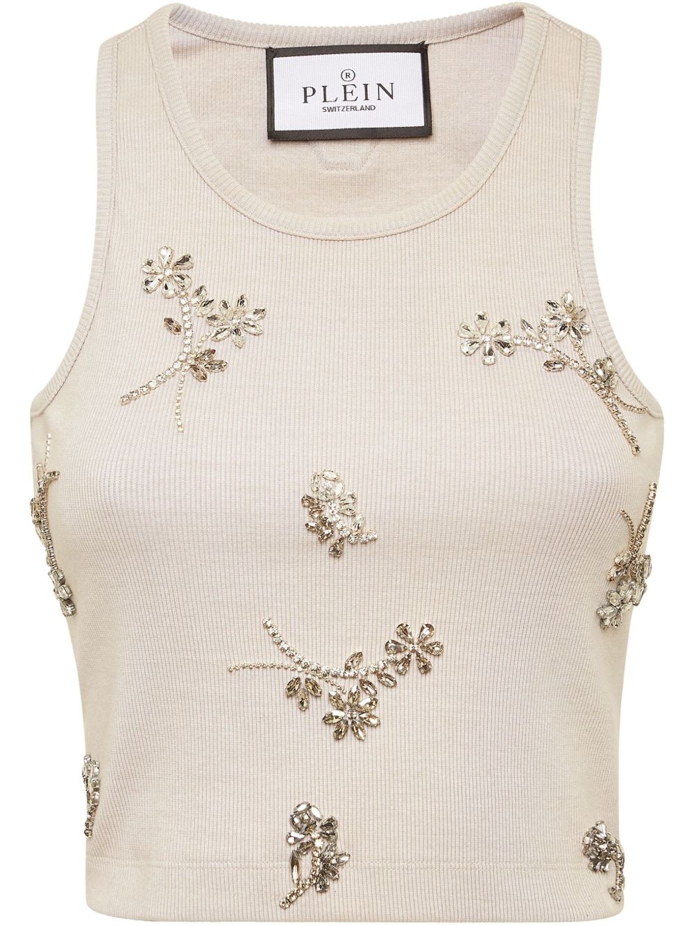 Flowers tank top Highlights - Grey - Crew neck - Floral applique - Sleeveless - Cropped Imported Composition Cotton 95%, Elastane 5%