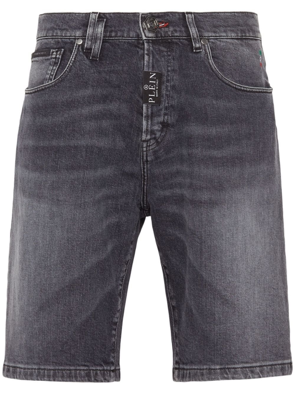Formentera low-rise denim shorts Highlights - Grey - Stretch-cotton - Faded effect - Whiskering effect - Logo plaque - Low-rise - Logo pull-tab - Belt loops - Classic five pockets - Concealed fly and button fastening - Straight leg Made in Italy Composition Lining: Polyamide 65%, Cotton 35% Outer: Cotton 98%, Elastane 2% Washing instructions Read Manufacturer Guidelines