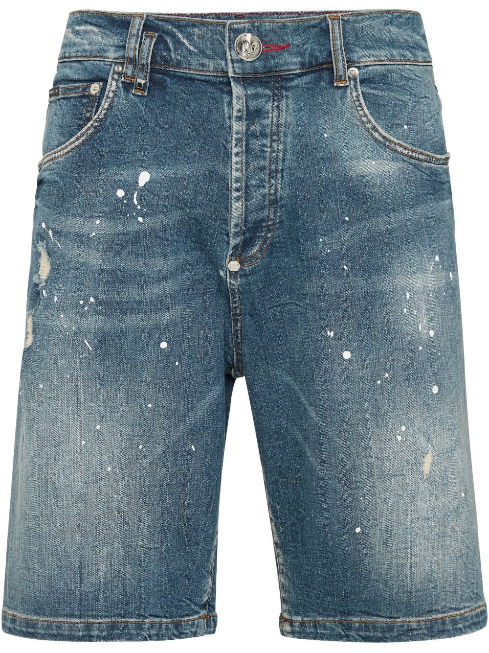 Formentera Skulls denim shorts Highlights - Light blue - Paint-splatter print - Front button fastening - Classic five-pocket design - Contrast stitching - Back pockets - Belt loops - Straight leg cut - Raw hem Imported Composition Fabric 100%