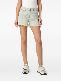 fringed-edge shorts Highlights - Light blue - Concealed fly and button fastening - Belt loops - Classic five pockets - Embroidered logo to the rear Made in Italy Composition Lining: Polyester 65%, Cotton 35% Outer: Cotton 100%, Polyester 100%, Calf Leather 100% Washing instructions Read Manufacturer Guidelines