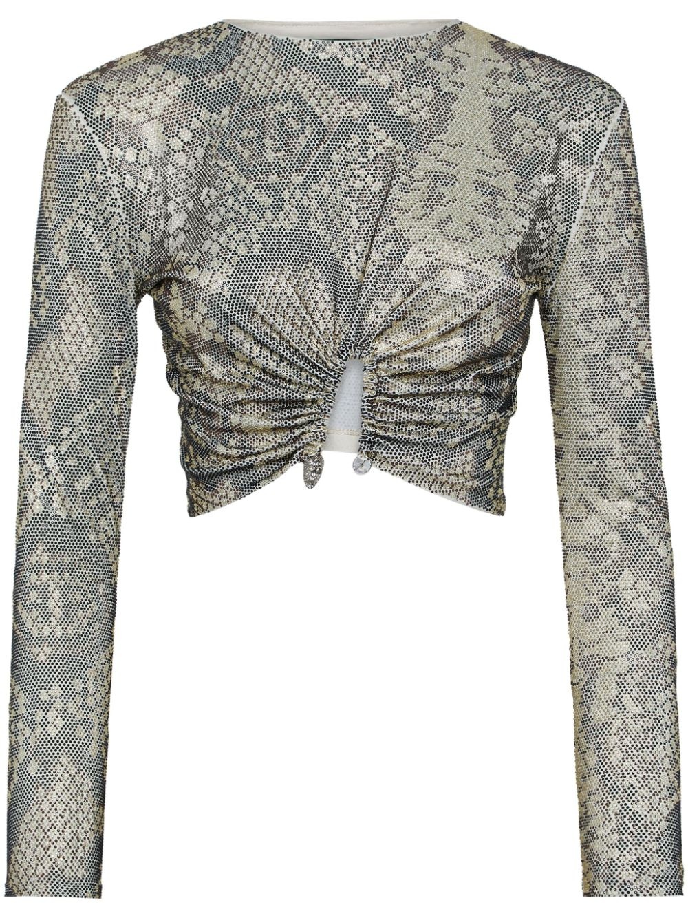 glass crystal embellishment T-shirt Highlights - Grey - Glass crystal embellishment - Snakeskin effect - Cut-out detailing Imported Composition Glass Fiber 100%, Polyester 95%, Spandex/Elastane 5%